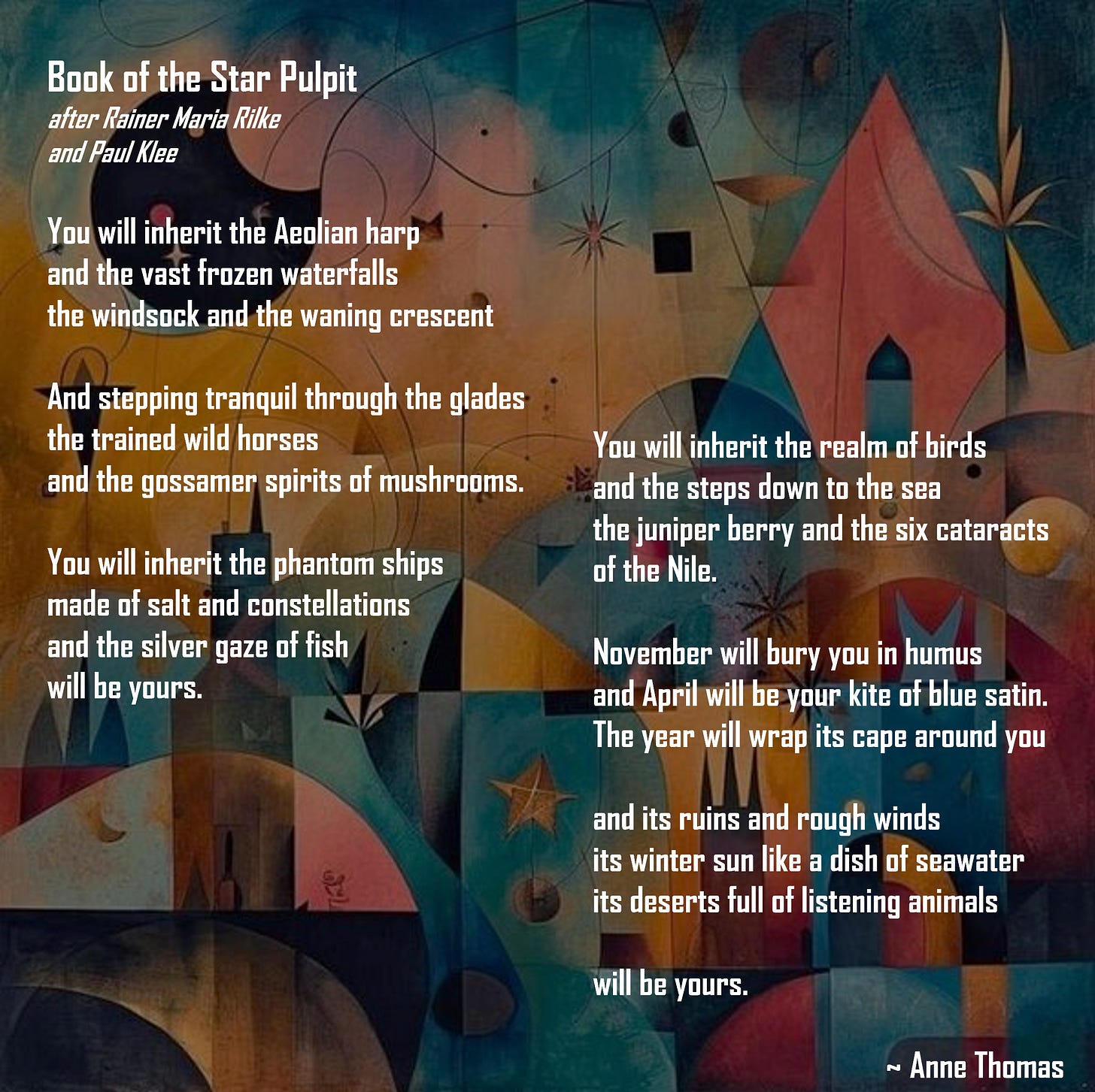 And in case you missed it, the reason for my poetic frame of mind: an October poem-a-day project in the whimsical world of Paul Klee.